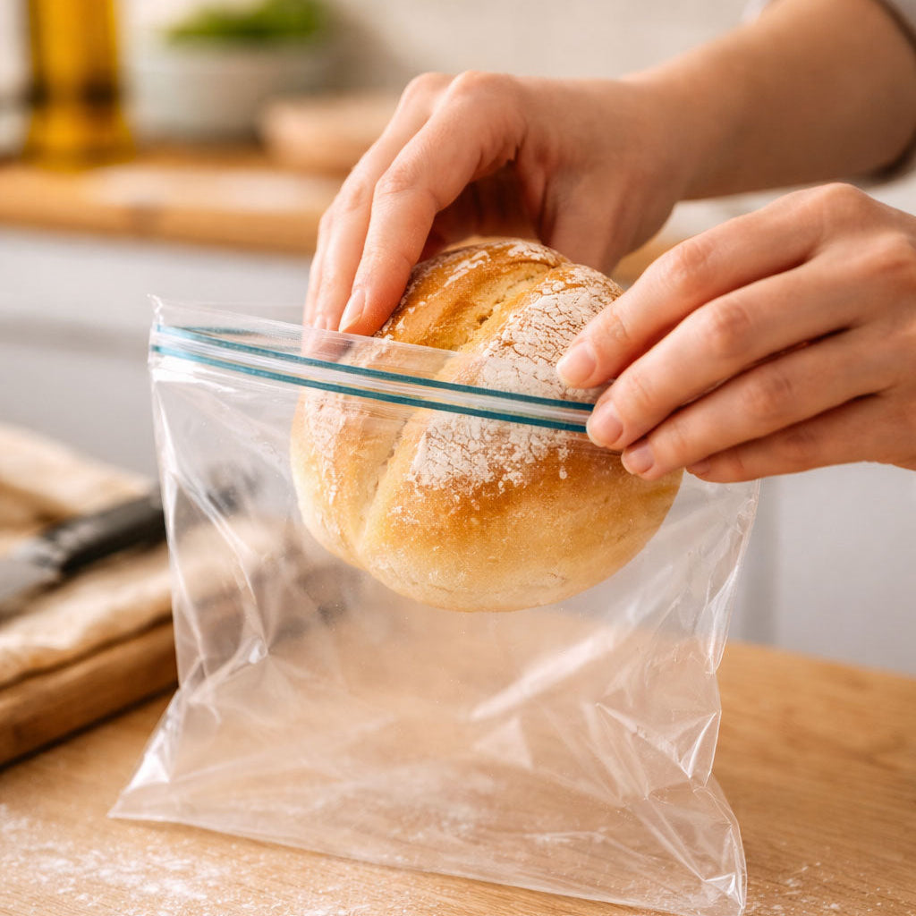 - Transfer the bread to a sealed bag (ziplock or airtight container).